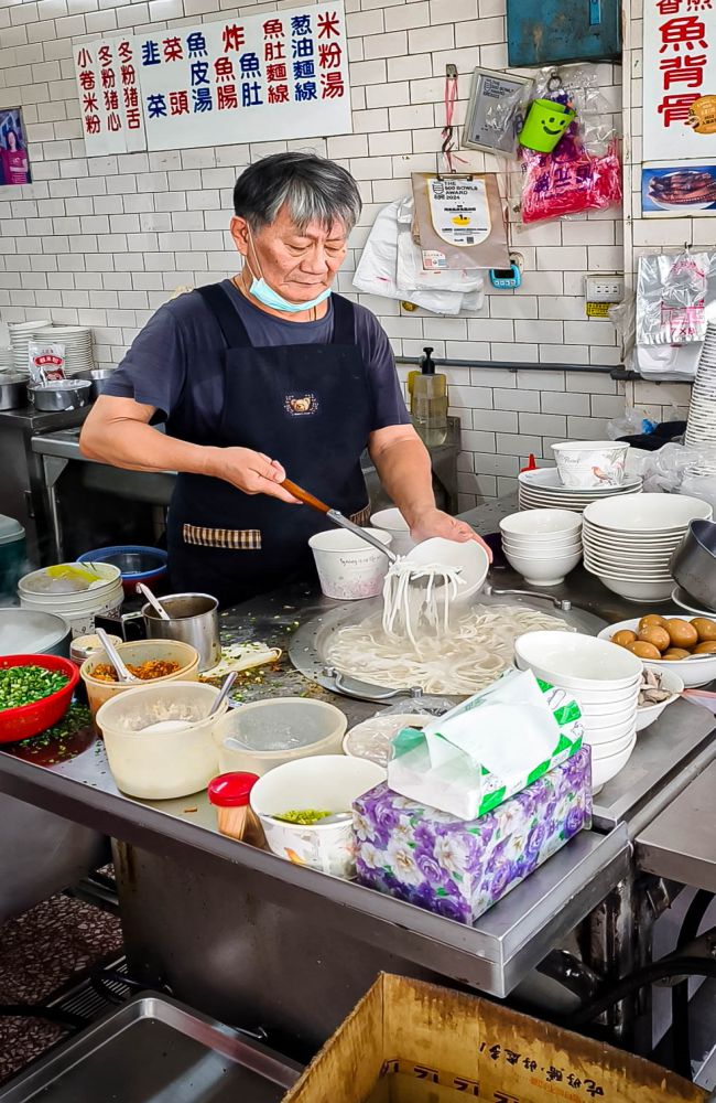 人潮熱絡卻不顯喧嘩,反而交織出一種庶民市場般的熱情氛圍,看著大家專注品嚐、滿足點頭的模樣,就能明白這碗米粉湯為何能在鹽埕屹立數十年,成為許多人早晨覓食的固定儀式。