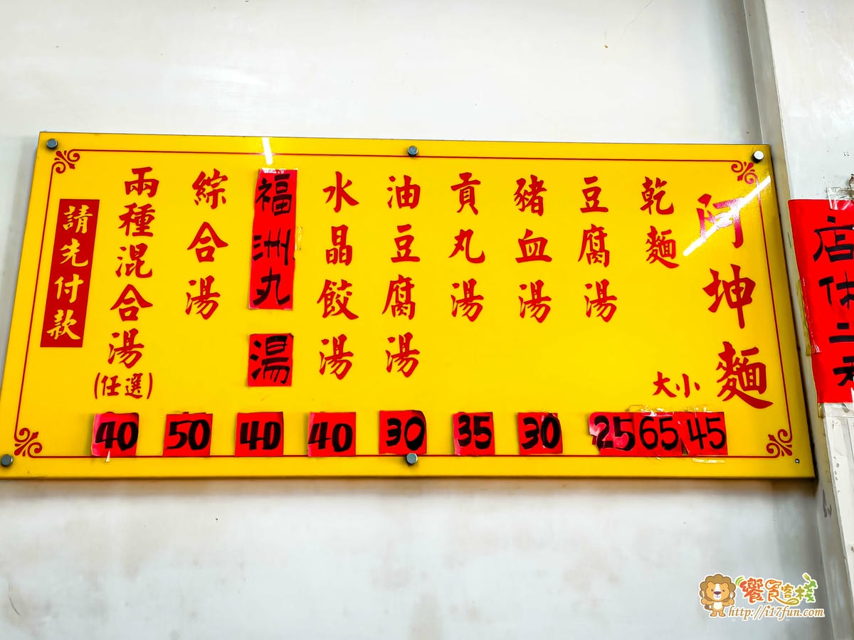 阿坤麵的菜單