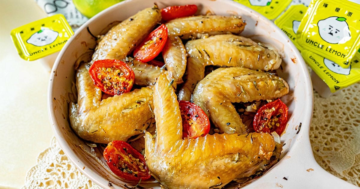 到市場買雞翅做迷迭香檸檬烤雞翅,請攤販…