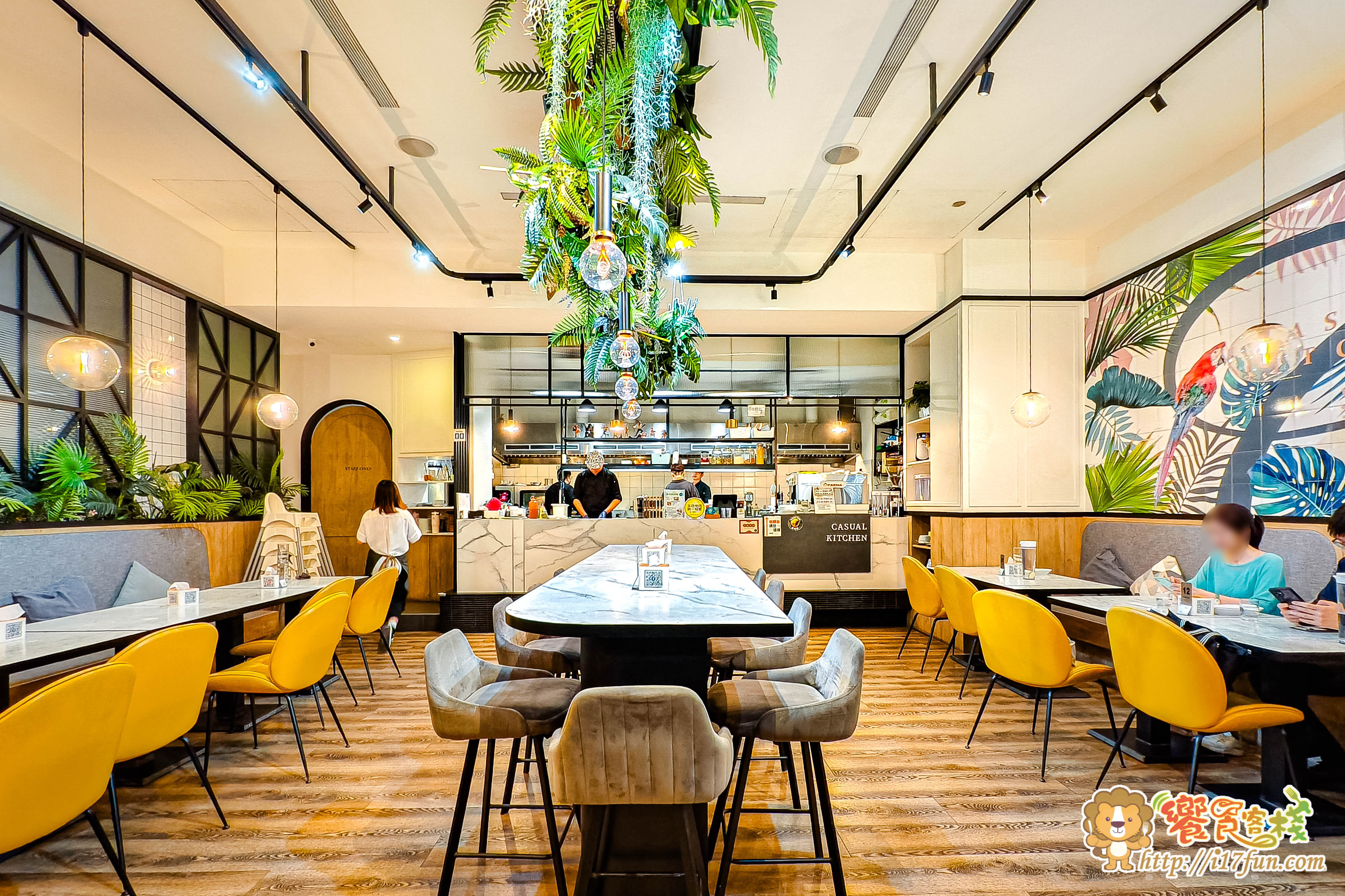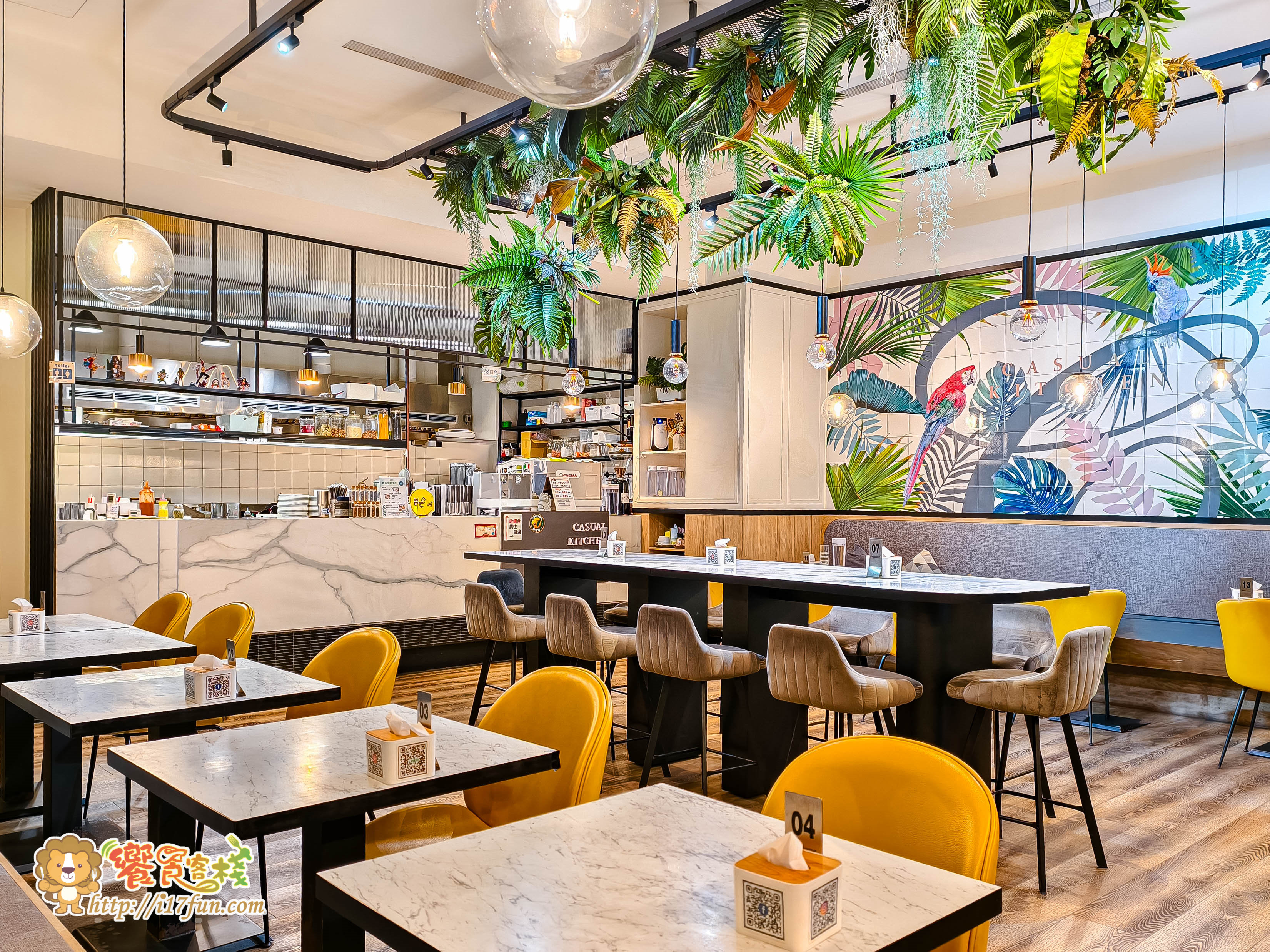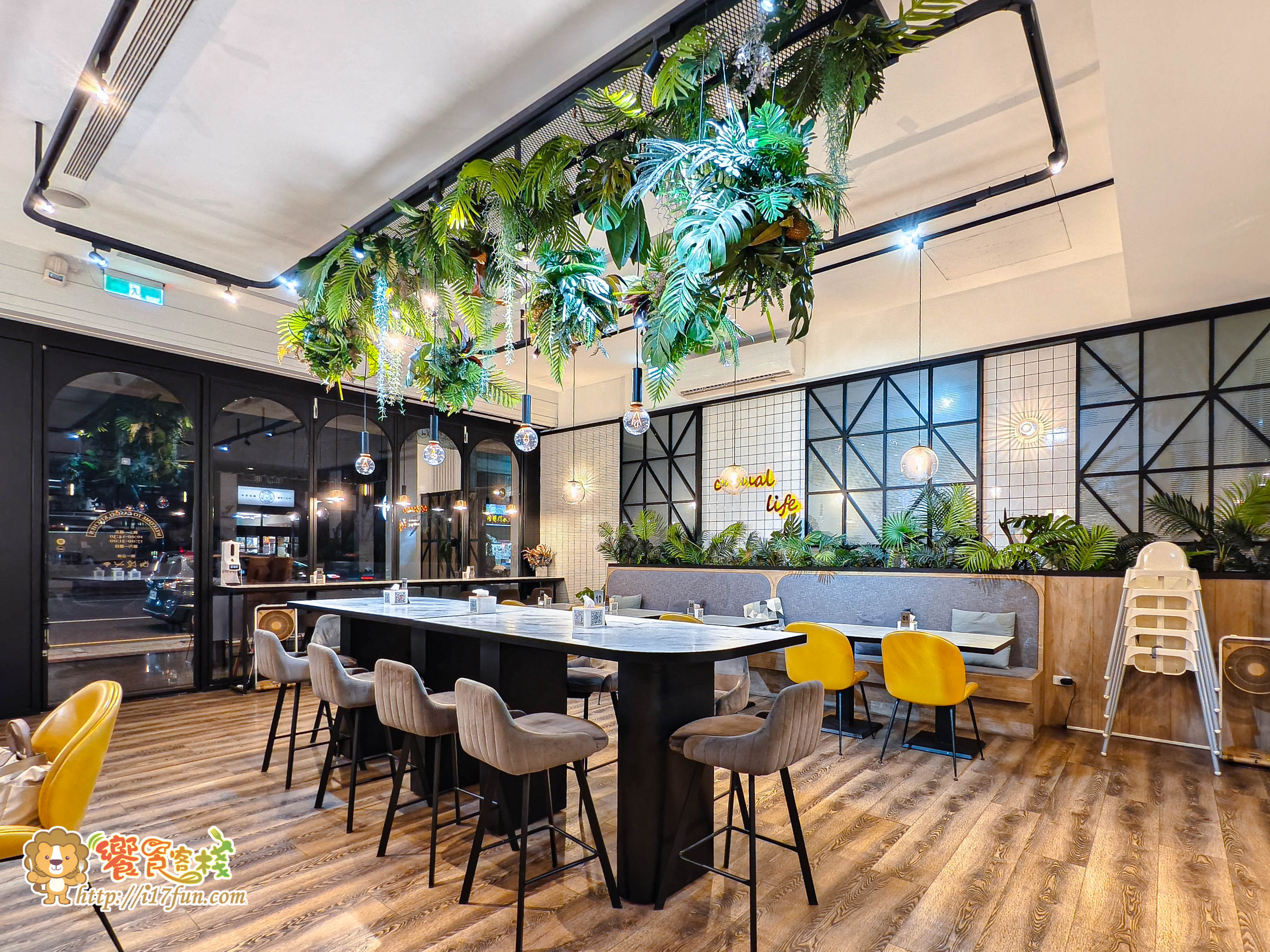 夏佐廚房的室內空間充滿質感與巧思,以叢林風格為設計主軸,綠意盎然的植栽與精緻的裝潢相互呼應,柔和的燈光映照在每個角落,營造出輕鬆慵懶的氛圍,讓人一踏入便感受到溫暖與舒適的包覆感。