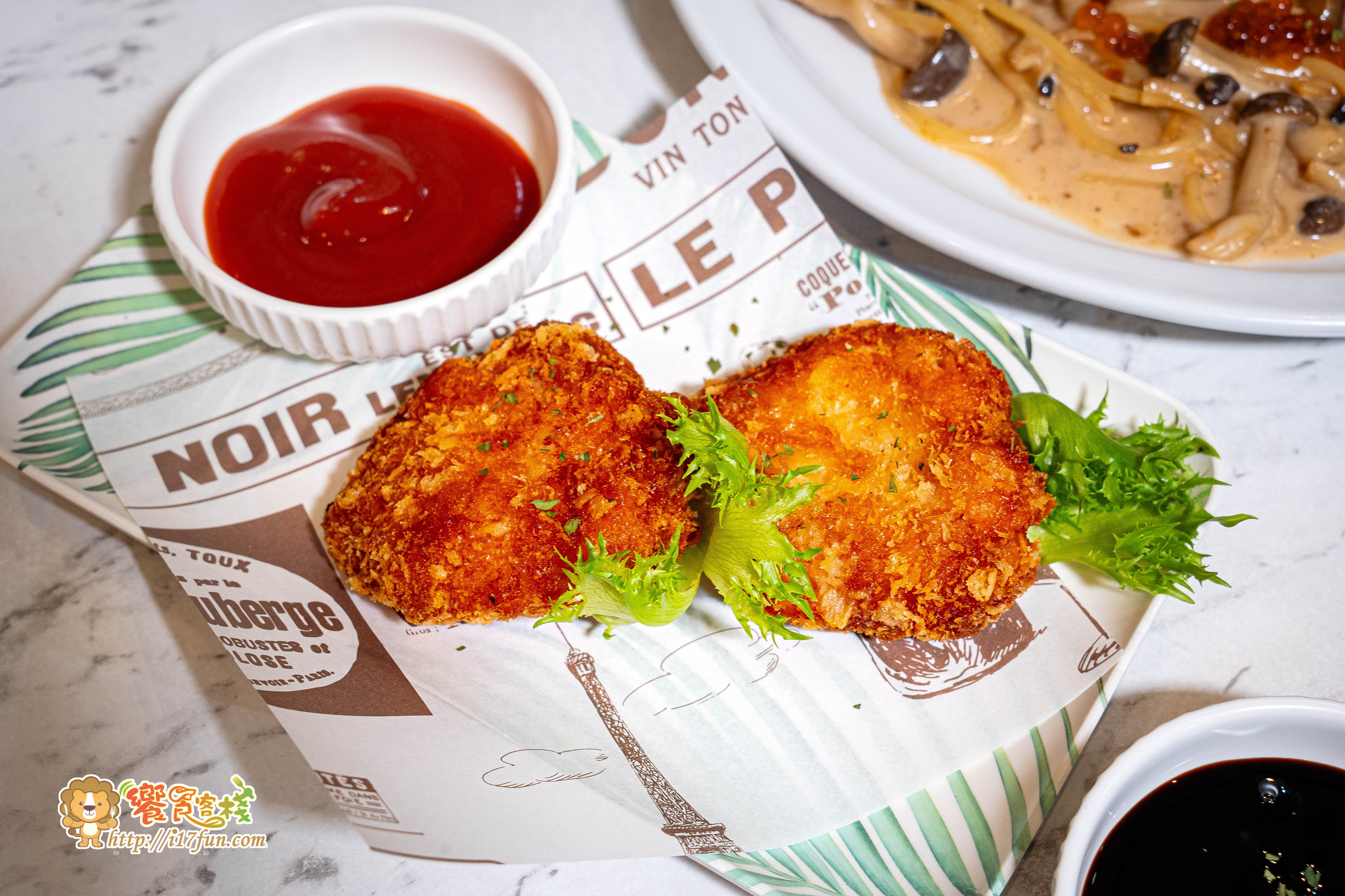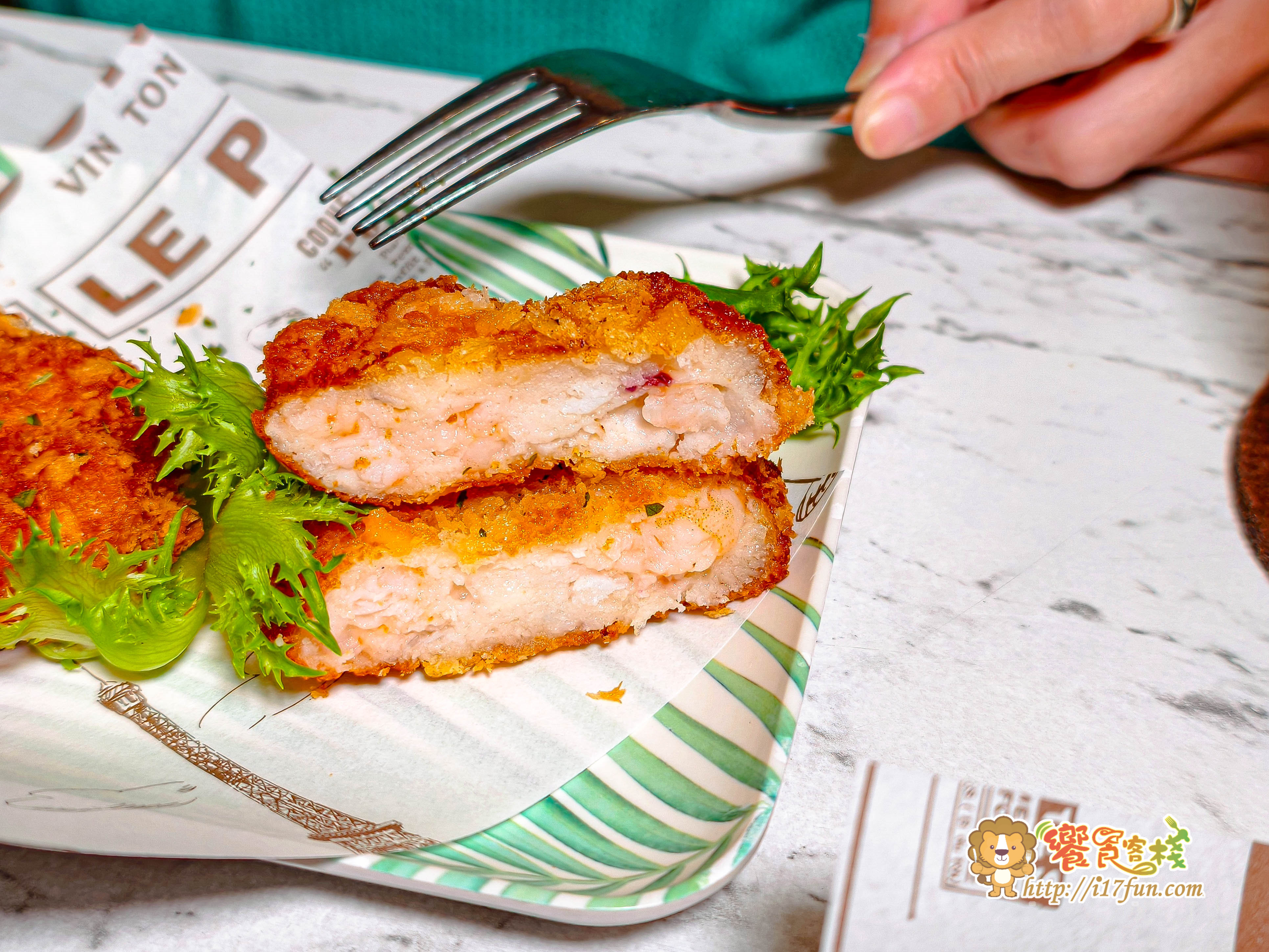 厚實花枝蝦排外層金黃酥脆,咬下瞬間釋放誘人香氣,內餡飽滿紮實,能清楚感受到花枝的彈牙與鮮蝦的鮮甜多汁,兩者交織出鮮美的海味層次,每一口都兼具酥脆、Q彈與鮮嫩的口感,鮮香濃郁卻不油膩,單吃就很驚艷,搭配蕃茄醬更能凸顯其豐富滋味。