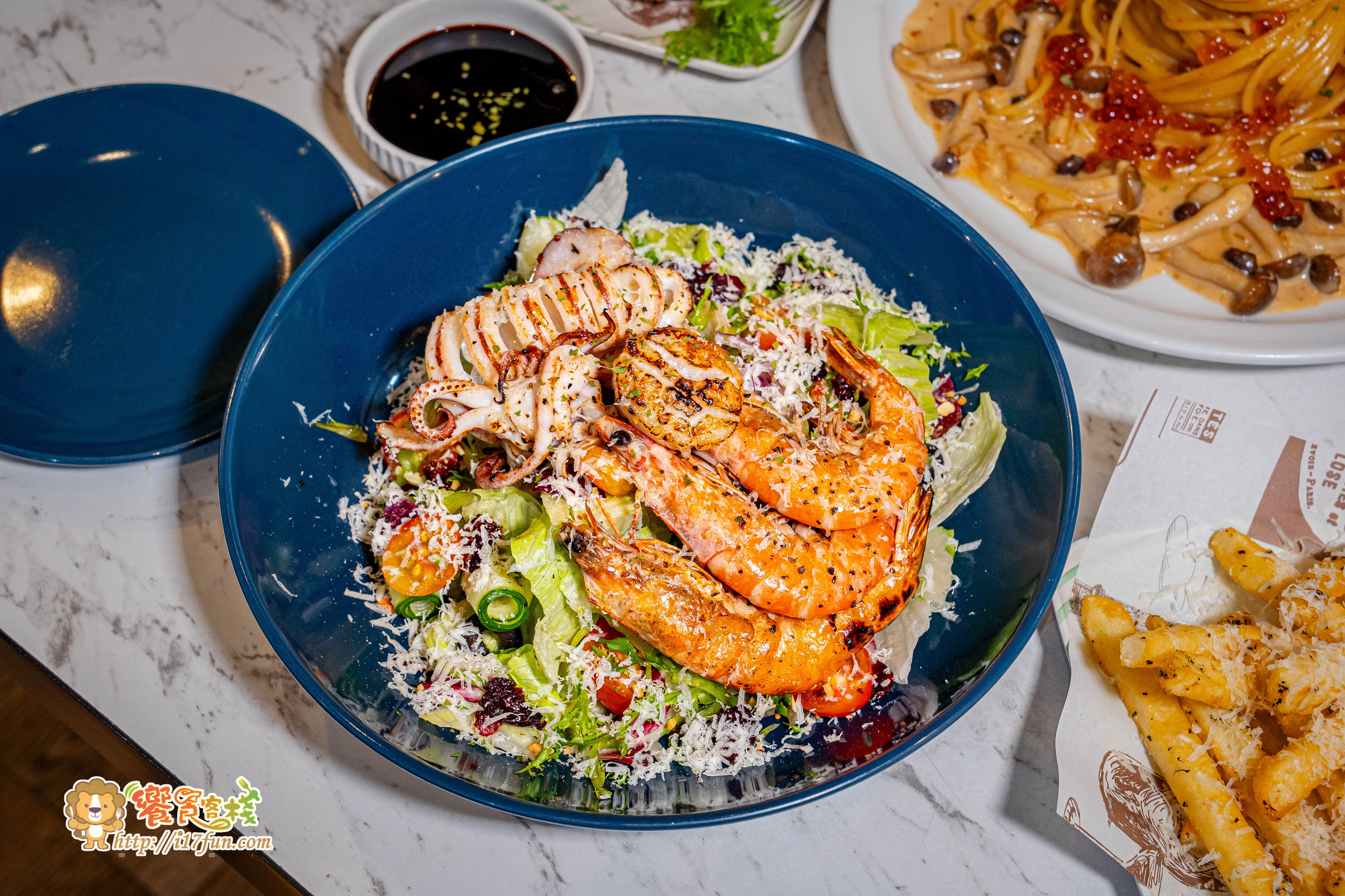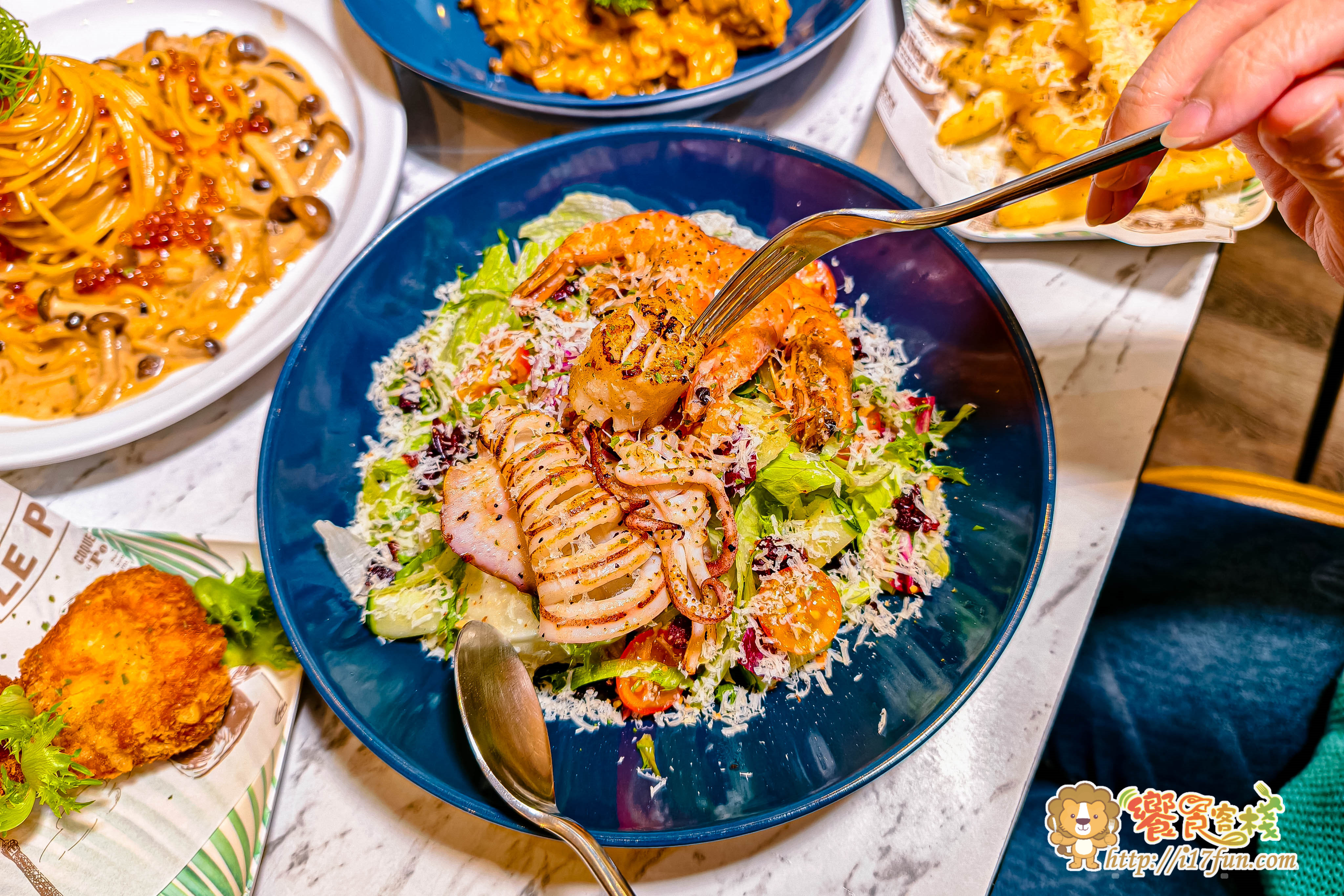 以新鮮的生菜做為基底,吃起來清爽脆口感與搭配帕瑪森起司的濃郁奶香,使這道沙拉不僅僅是清爽的前菜,更是一道充滿驚喜與層次的饗宴,鮮甜、清香與濃郁在口中交織,讓人一口接一口停不下來,絕對是海鮮愛好者的夢幻選擇。