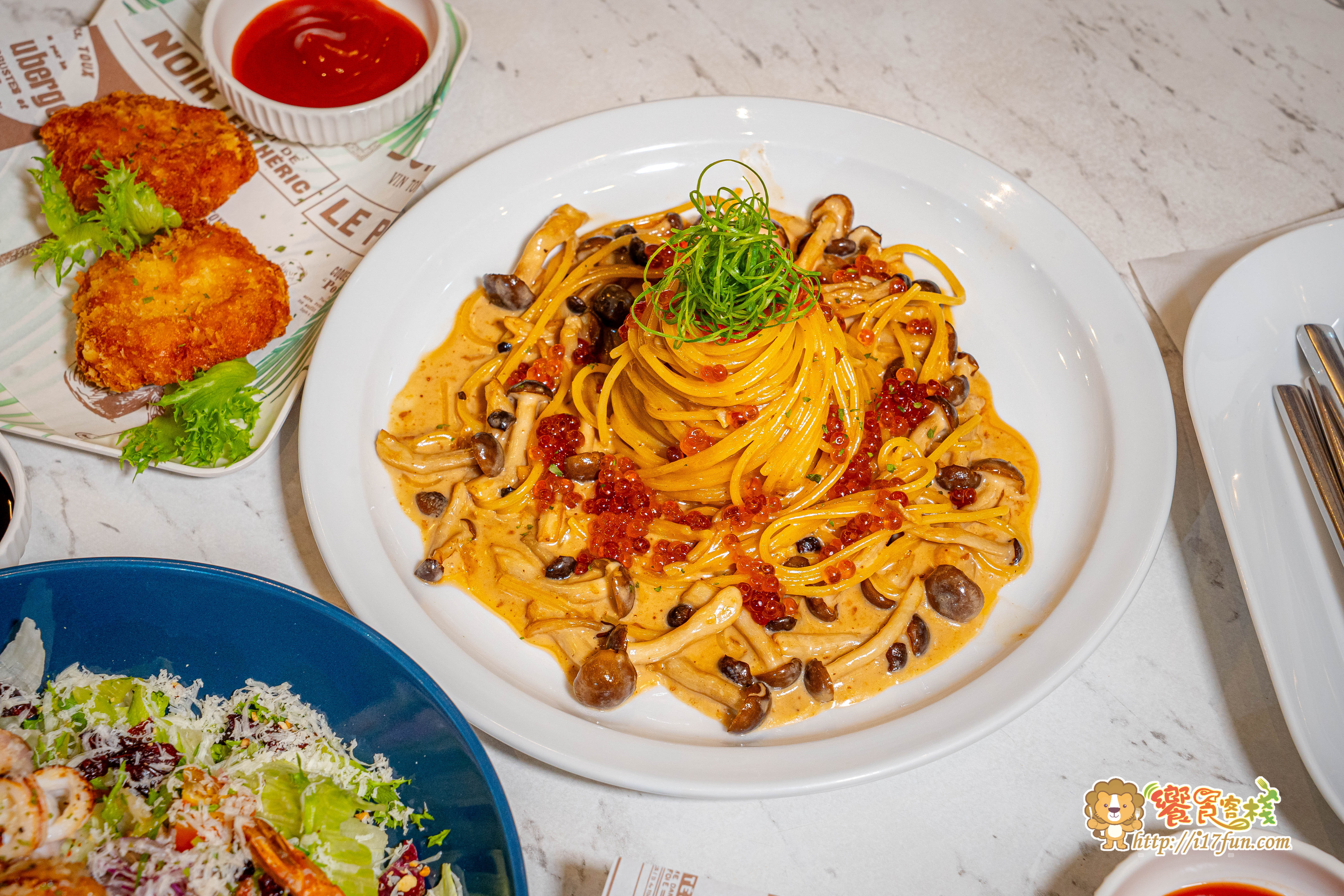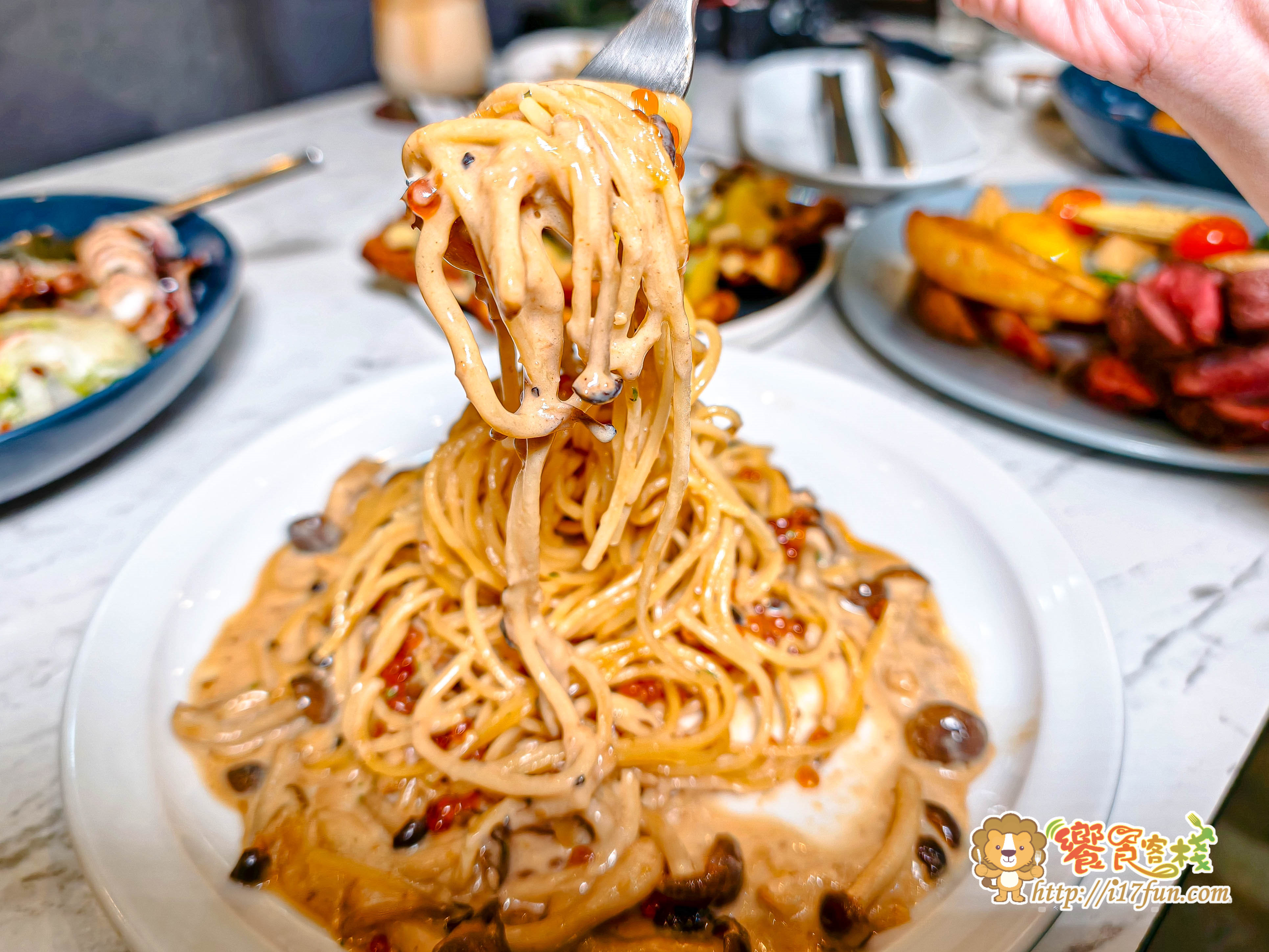 麵條則恰到好處地吸附著醬汁,讓每一口都均勻裹上濃郁的胡麻香與明太子的鹹鮮,口感滑順而帶有彈性,這道料理整體風味平衡,不僅能嚐到胡麻的濃厚、明太子的鹹鮮,還能感受到鮭魚卵帶來的鮮美驚喜,每一口都是溫潤與鮮香的交織,濃郁卻不膩口,讓人忍不住一口接一口,品嚐出義式料理與日式元素融合的獨特魅力。