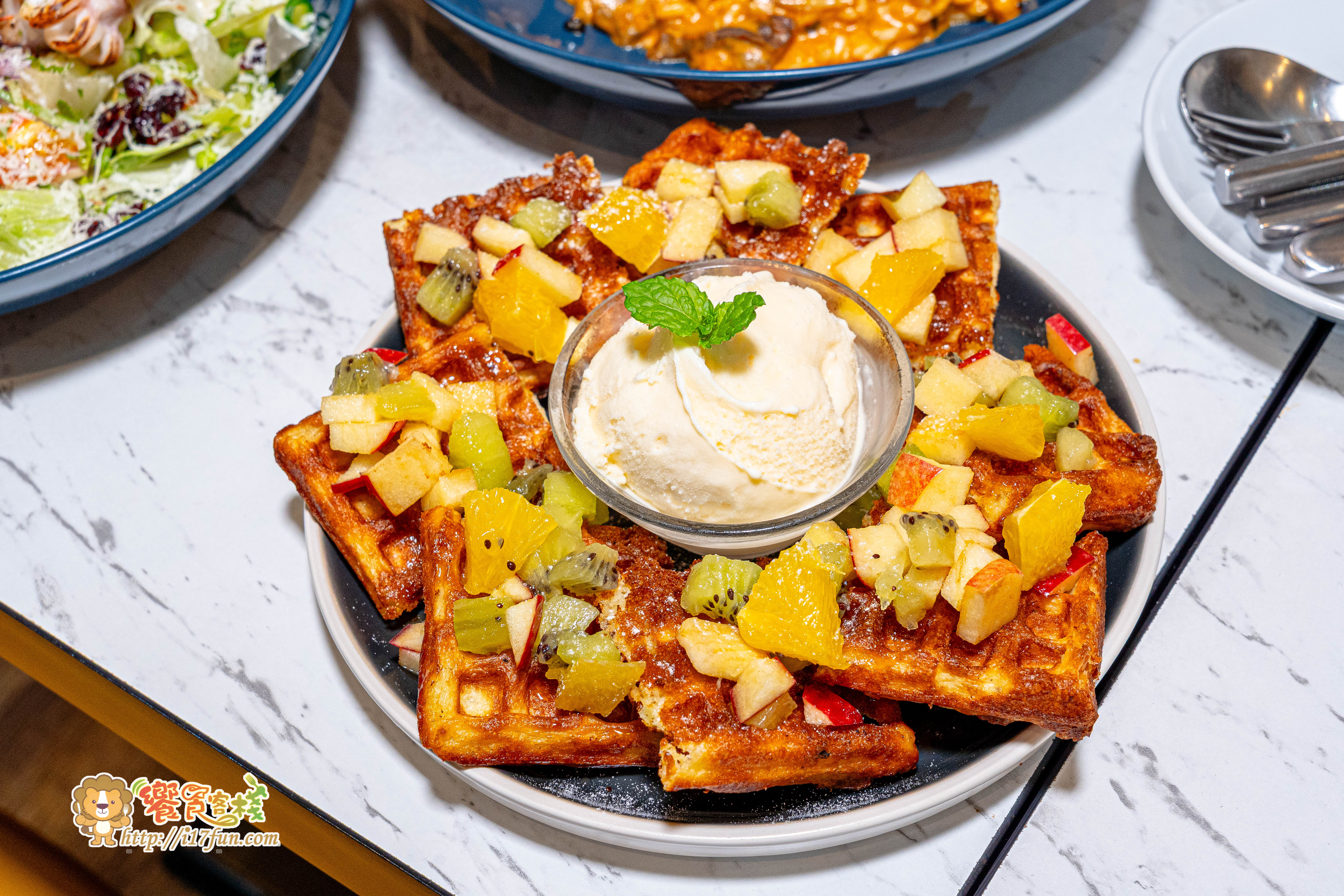 楓糖鮮果鬆餅口感鬆軟綿密,即使放涼也不會變硬,依然保有柔嫩彈性,淋上香甜楓糖後,甜而不膩,與鬆餅自然融合,搭配清爽多汁的蘋果、香吉士與奇異果,增添酸甜層次,再結合香草冰淇淋的滑順濃郁,每一口都兼具清新與甜美,令人回味無窮,很適合當作餐後甜點。