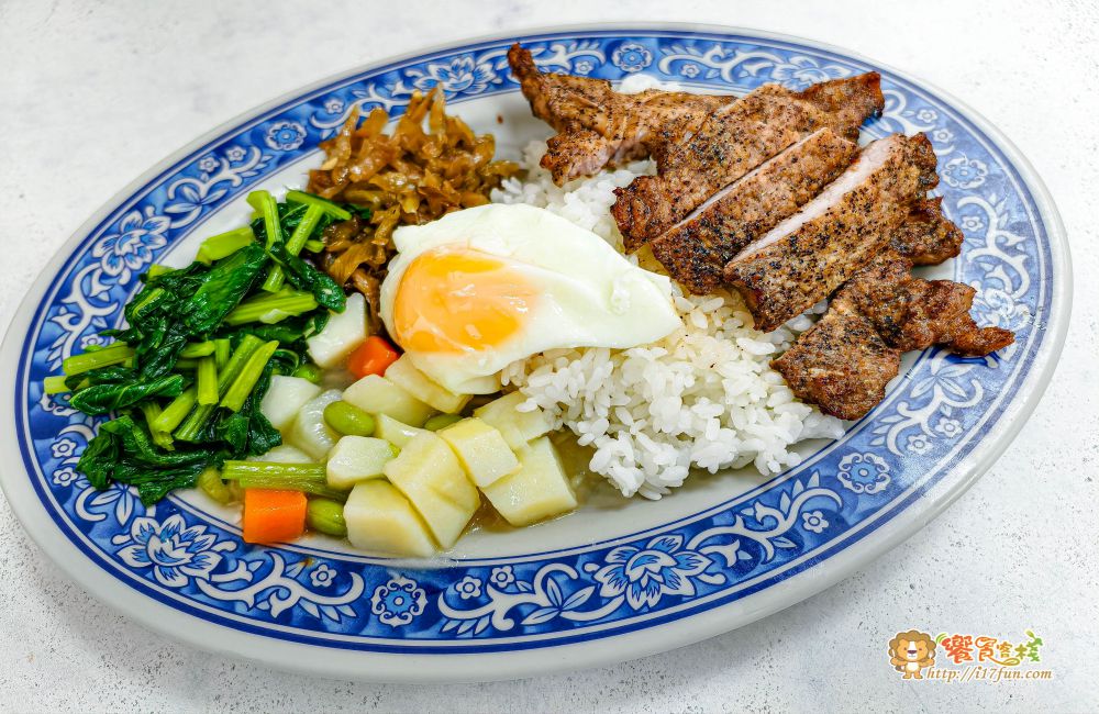 古早味排骨飯的排骨經過細心醃製,鹹香入味、外層微酥帶香氣,肉質厚實不乾柴,咬下去能感受到紮實的口感與肉汁的香甜。每一口都能吃出傳統手路菜的樸實風味,搭配白飯更是絕配,愈嚼愈香,令人回味無窮。