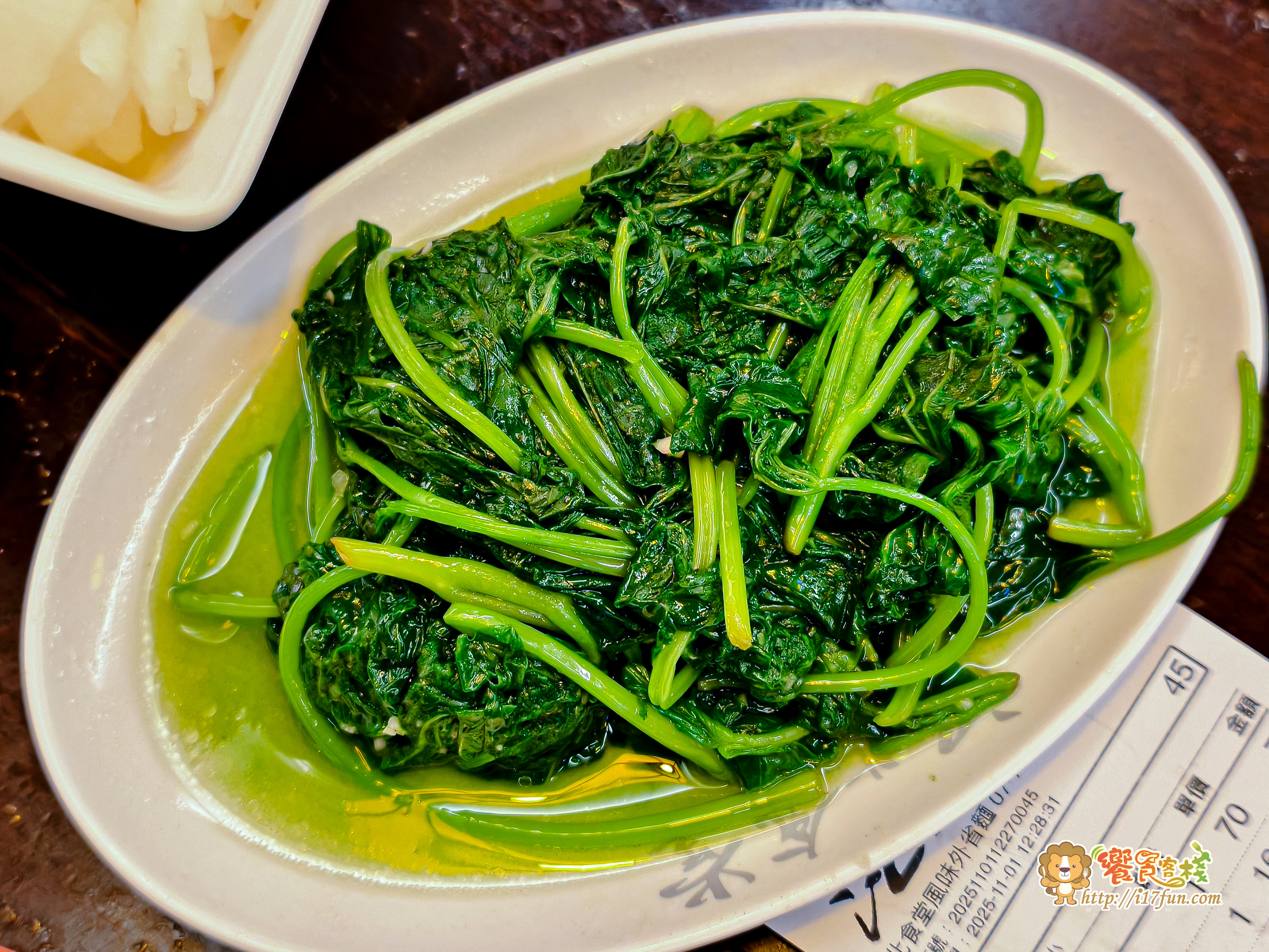 燙地瓜葉保留了鮮嫩的口感,入口柔軟中帶點微微脆度,清甜爽口不帶苦味。淋上簡單的調味,更襯出蔬菜的自然香氣,是搭配麵食時最解膩又順口的小菜之一。