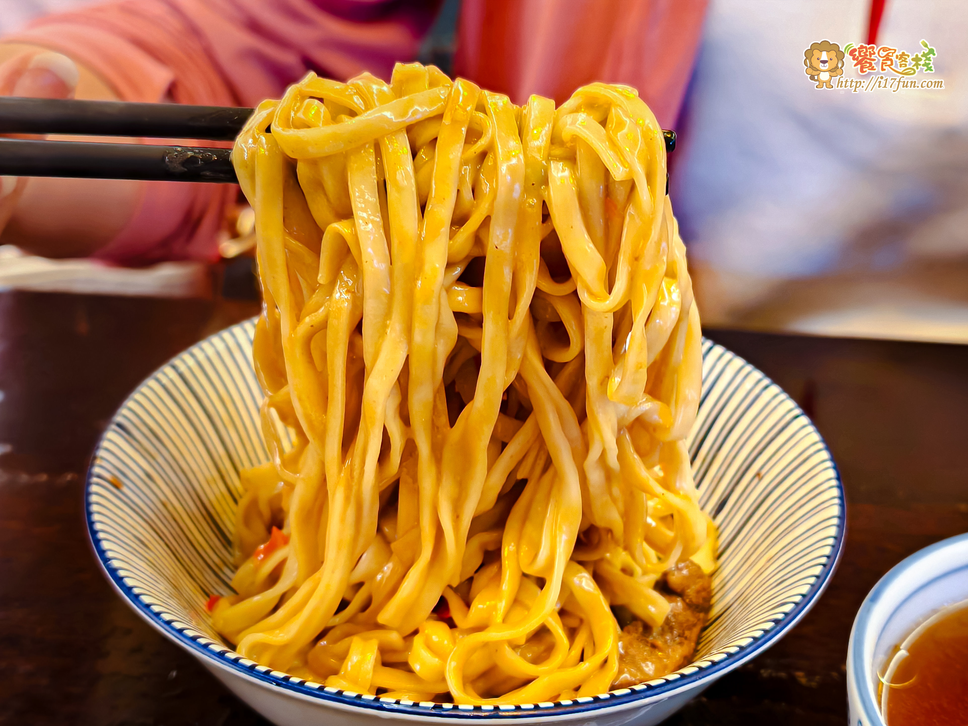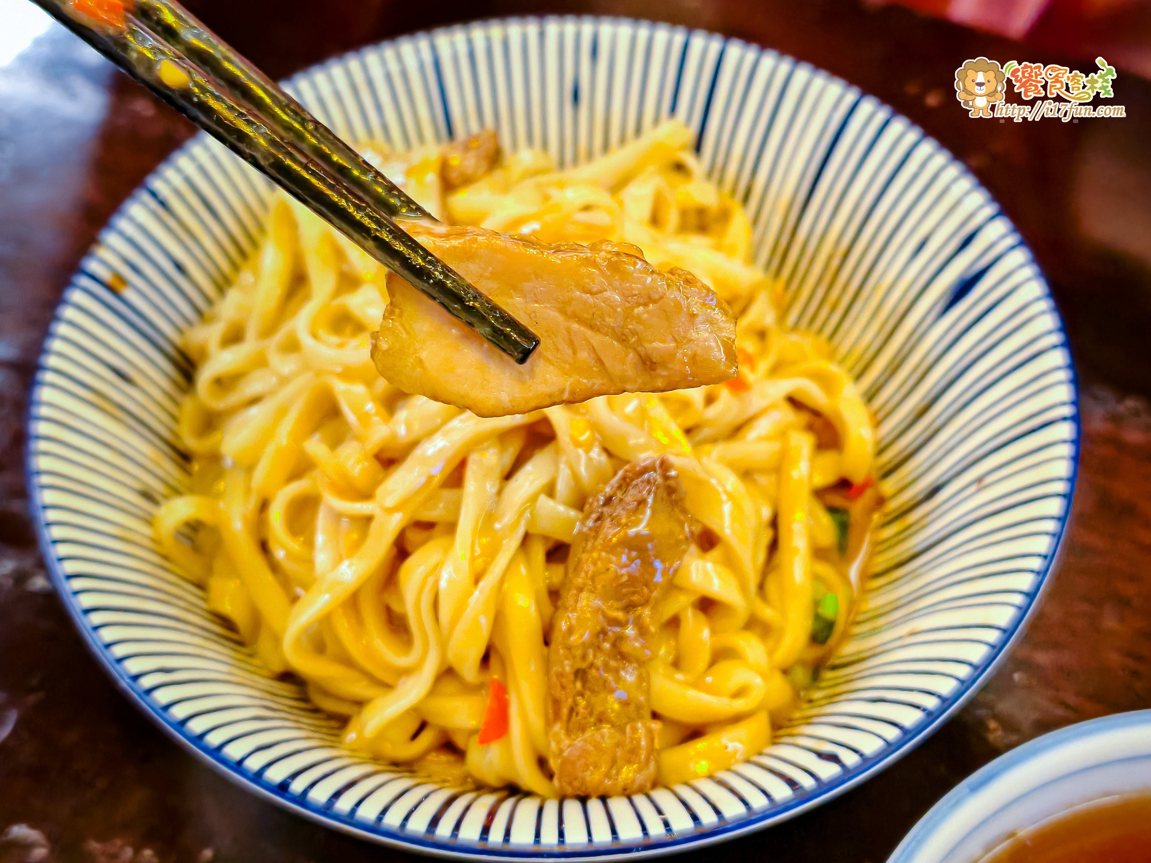 豬肉乾麵帶有濃郁的麻醬香氣,麵條雖偏薄但仍保有彈性與口感,吸附滿滿醬汁後每一口都香氣四溢,麻醬的濃厚香氣與豬肉的鹹香完美融合,滑順又不膩口,越吃越涮嘴,是讓人一試成主顧的招牌人氣麵款。