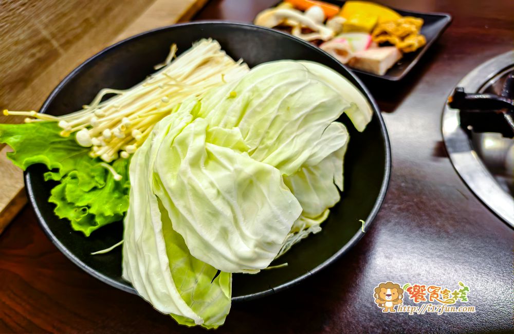 搭配好的基本菜盤,有高麗菜、金針菇、冬粉。