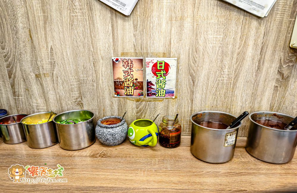 提供各種醬料,光是醬油還可以依照喜好搭配日式醬油或是韓式醬油,很加分!