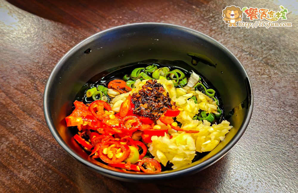 自己調配的沾醬,依照喜好混合蒜末、辣椒、醬油與沙茶,風味更能貼合自己的口味。