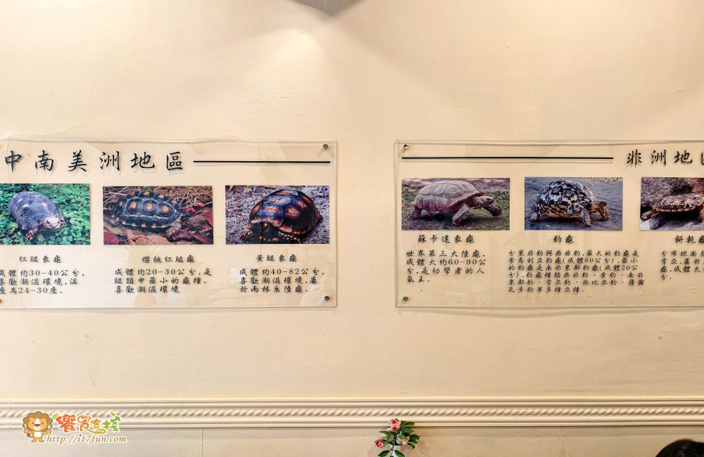 牆面上也有各種陸龜的品種介紹,有亞洲地區、歐洲地區、海島地區、中南美洲….等等地方。