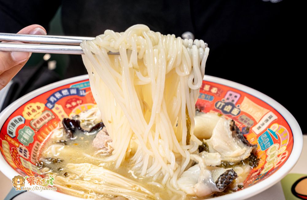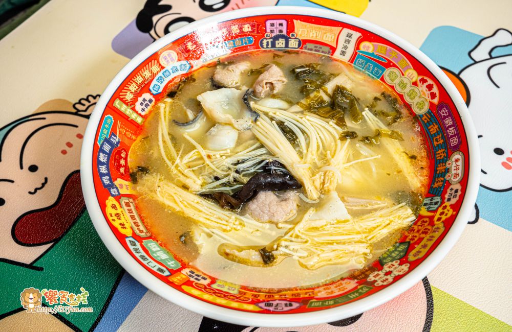 麵條柔中帶彈,完美吸收酸菜魚的湯汁精華,酸香麻辣的味道均勻滲入每一口,吃起來口感十足、回味無窮。