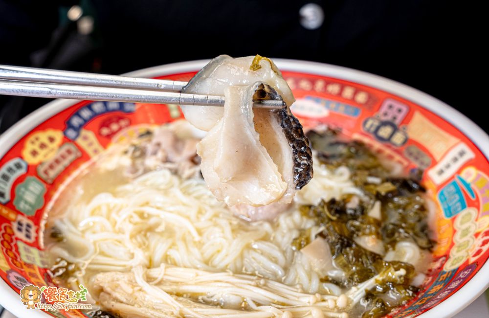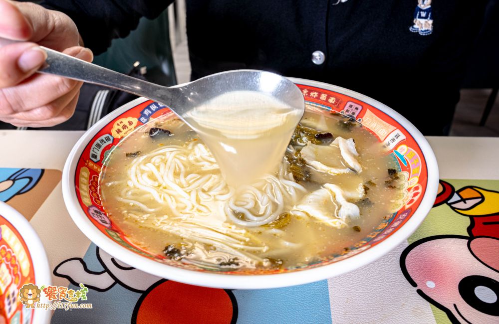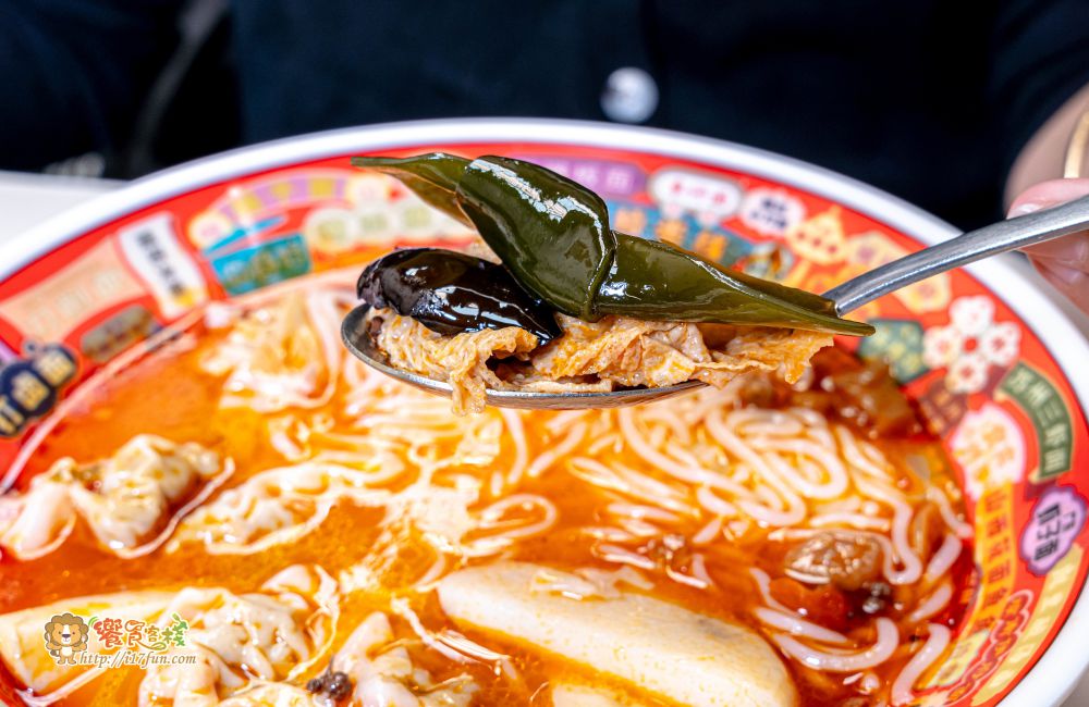 裡頭的配料也是不少,有豬肉片、金針菇、闆娘自製的酸筍….等等。