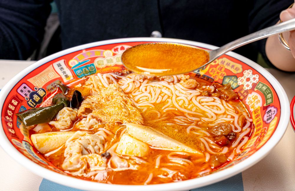 愛吃辣的饕客不妨試試混沌泡椒麵,辣度大約落在中辣,溫潤不嗆喉,慢慢品嚐時,還能感受到湯頭層層堆疊出的香氣與酸辣變化。