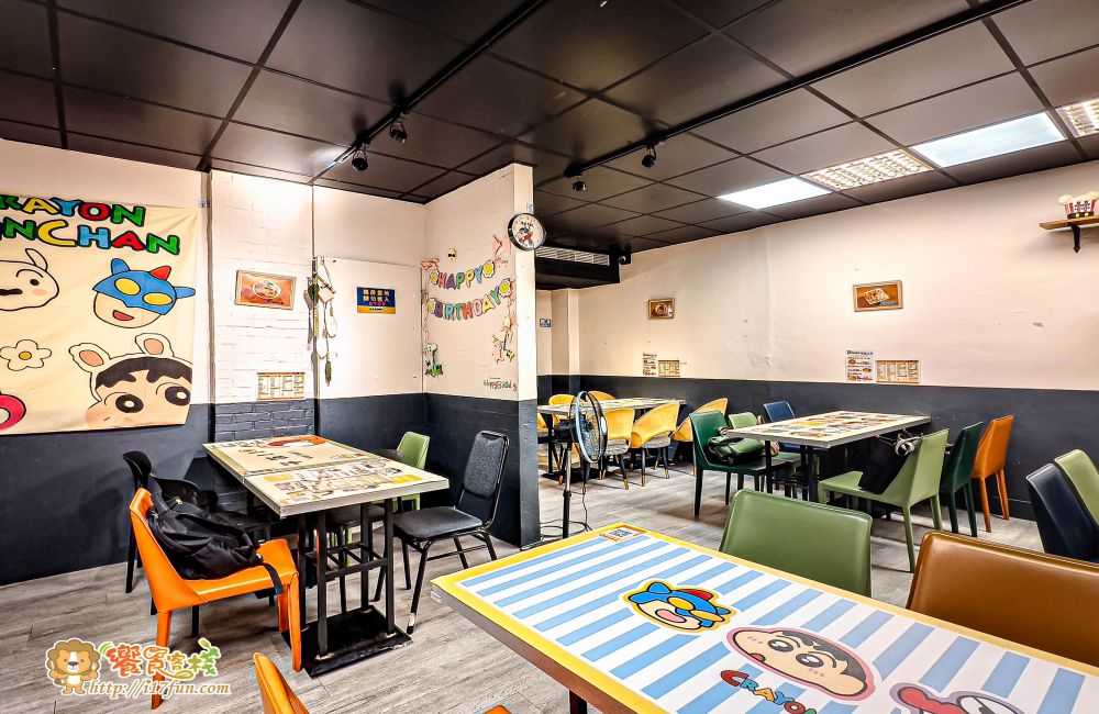 走進店裡,映入眼簾的是滿滿的蠟筆小新佈景,從桌面、牆面到時鐘,全都是熟悉的可愛元素,一眼就能感受到店主對蠟筆小新的喜愛,氛圍相當輕鬆又療癒。